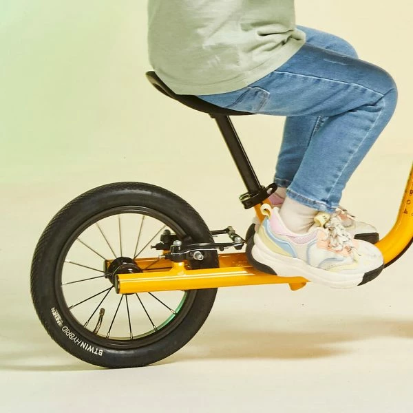Le repose-pieds lâinvite Ă dĂ©coller les pieds, et donc Ă jouer avec son Ă©quilibre. La position du repose-pieds le prĂ©pare Ă mettre ses pieds au bon endroit lorsquâil passera au vĂ©lo.