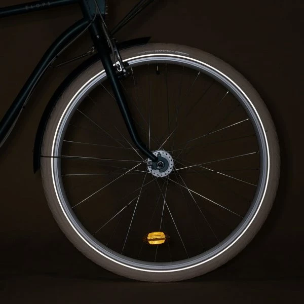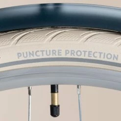 L’Elops 540 est monté avec des roues 28 pouces, avec des jantes en aluminium brut DOUBLE-parois (donc solides). Pour protéger vos jantes et éviter les crevaisons, nous vous conseillons de gonfler vos pneus à une pression comprise entre 3,5 et 4,5 bars. Et pour éviter les risques de vol pendant vos activités en ville, la roue est fixée grâce à un moyeux à écrou.