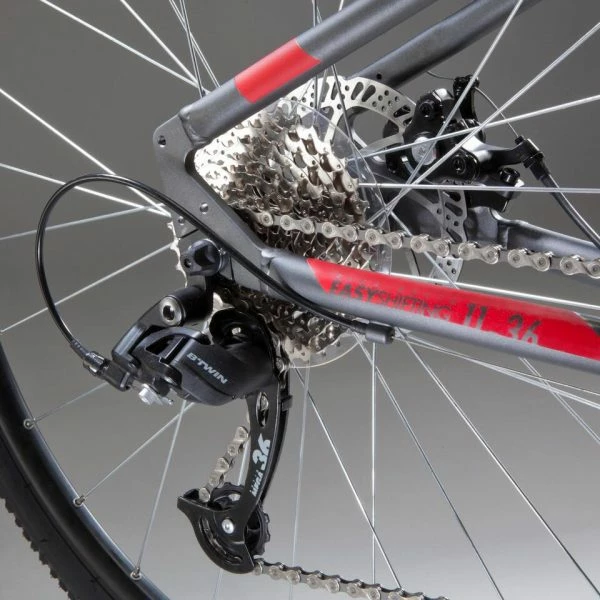 La transmission mono-plateau vous facile la vie : Vous changez les vitesses avec une seule gâchette. L’étagement des vitesses est prévu pour permettre le franchissement de petites côtes.