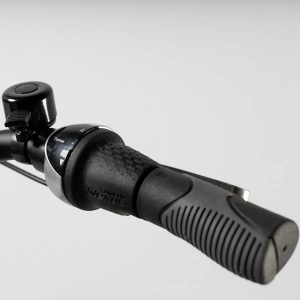 Ce vélo est équipé d’un dérailleur Shimano Nexus 7 vitesses commandé par une poignée tournante, pour faciliter l’usage et l’entretien.