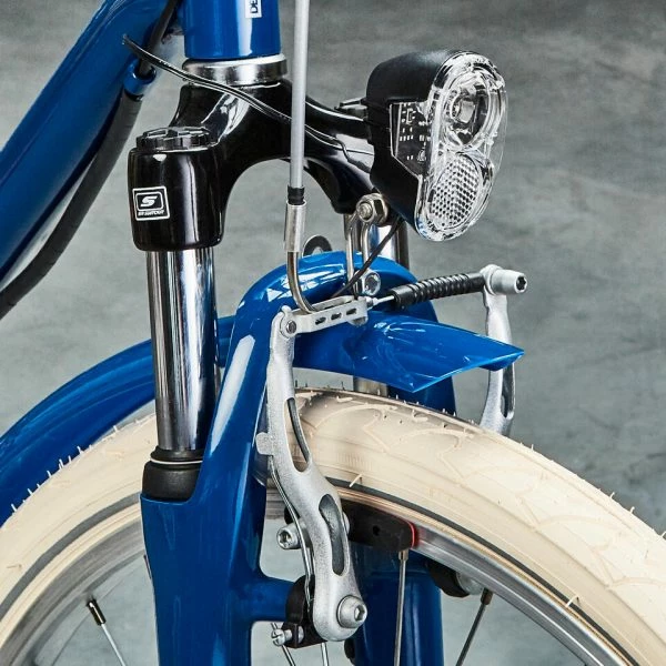 Le vélo est entiÚrement équipé pour rouler sur la voie publique de jour comme de nuit : éclairage LED et moyeu dynamo, avertisseur sonore, réflecteurs de lumiÚre sur les roues (catadioptres), pneus avec bandes réfléchissantes.