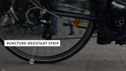 700 X 38 à tringles rigides et bandes réfléchissantes, carcasse trÚs résistante. Les chambres à air sont équipées de valves auto : le vélo peut se gonfler dans une station service.