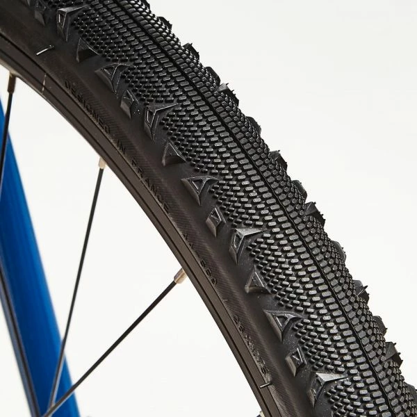 Pneus mixtes avec crampons latéraux permettant de rouler sur chemins et bitume