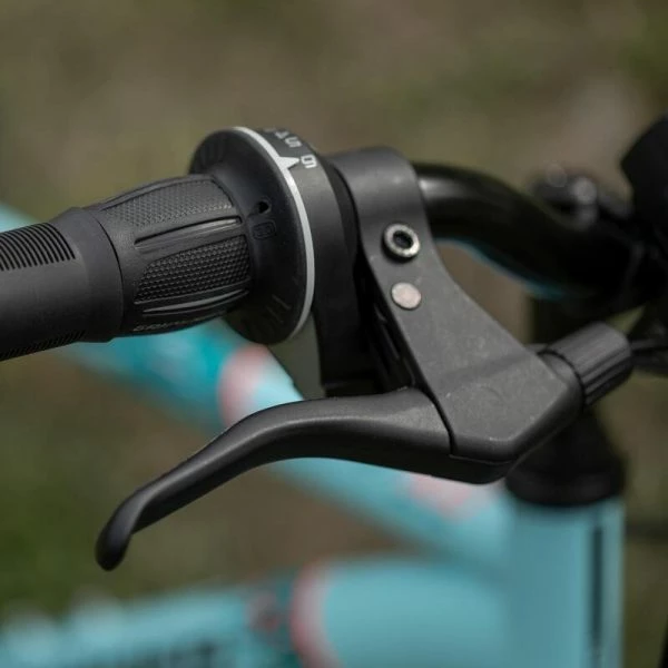 Ce vĂ©lo est Ă©quipĂ© dâune poignĂ©e tournante pour passer les 6 vitesses : un systĂšme plus facile et plus sĂ»r car lâenfant ne lĂąche pas le guidon.