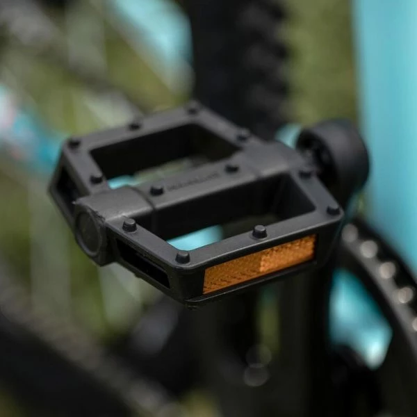 Ce VTT est Ă©quipĂ© dâune sonnette, dâĂ©clairages, de catadioptres de roues (rĂ©flecteurs) et de pĂ©dales plates.